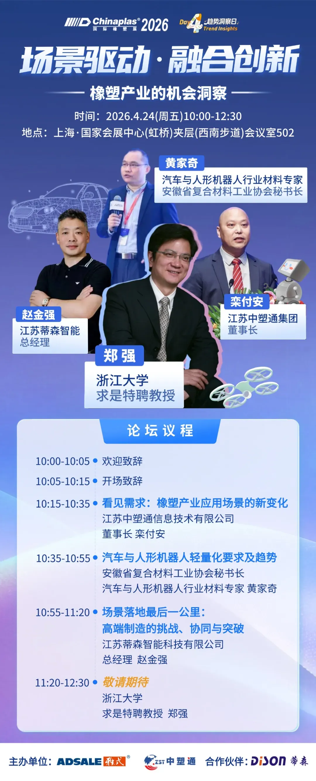 2. 塑·启未来:人形机器人与低空飞行器创新发展交流会,深入探索新兴产业中的橡塑核心技术。