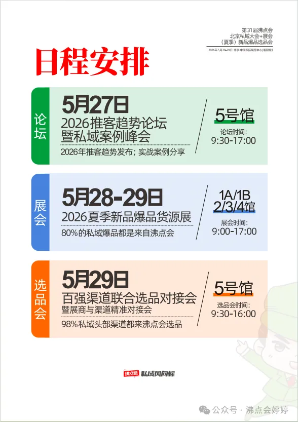 ✅ 5月 27 日 5号 馆 9:30-17:00行业论坛专场:私域大会 + 2026 推客趋势论坛暨私域案例峰会