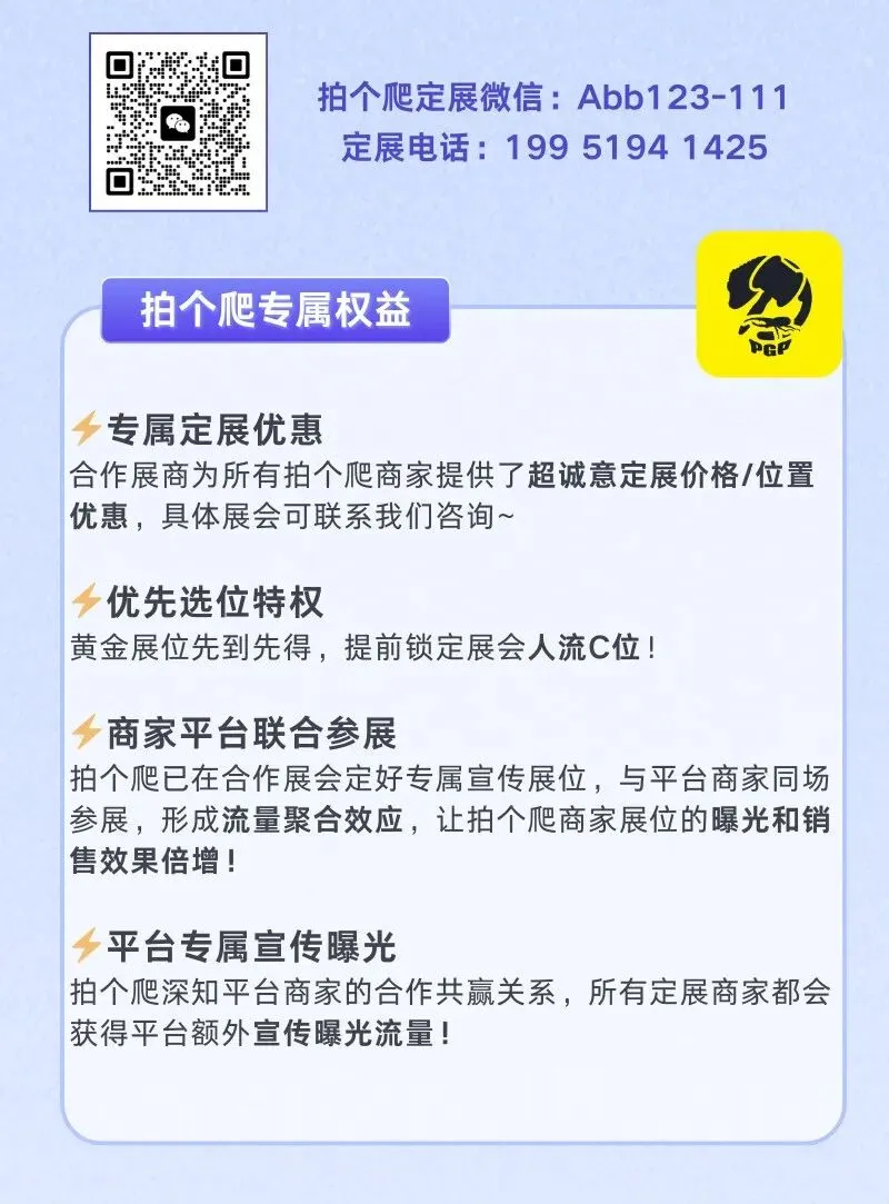 所有拍个爬合作展会,平台商家均可享受内部全网最低价!!
