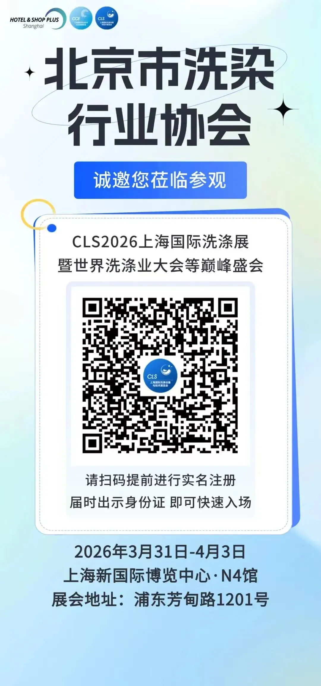 为助力行业同仁把握行业绿色化、智能化发展新机遇,加强南北行业交流协作,北京市洗染行业协会将组织会员企业及行业伙伴,共同参与2026年3月30日至4月3日在上海举办的系列重磅活动,诚邀各企业积极报名参与!一、活动核心信息(一)2026(第四届)洗涤视界品牌大会举办时间:2026年3月30日-31日举办地点:上海卓越铂尔曼大酒店(上海市青浦区竹盈路340弄1号)活动亮点:以“共享·沟通·预见”为主题,汇聚行业标杆企业、品牌创始人及核心管理者,共探洗涤品牌发展新未来。