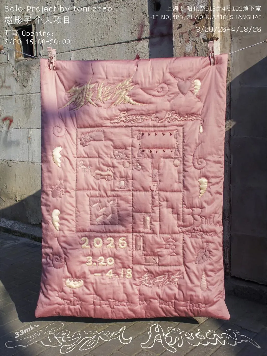Her pieces resemble both makeshift shelters and folded private maps. Through repetitive handwork, placements of objects learnt from street-smart observations, she questions the boundaries between “use” and “trace”, exploring the hidden links between everyday objects and emotion, memory, repair. The works engage with the exhibition space, creating narratives that accommodate marginal gazes—an ant, a child, a used dishcloth—where ragged things grow into a tender kind of love.