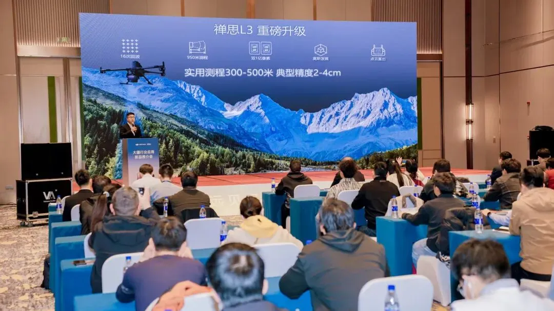 大疆始终秉持以硬核技术迭代生产力工具的理念,致力于为千行百业注入源源不断的新动能。现场详细的介绍了禅思L3航测激光雷达、司空2一体机、D-RTK3多功能基站三款产品,全面展示了大疆行业应用在数据采集、云端协同、精准传输等领域的卓越成果。
