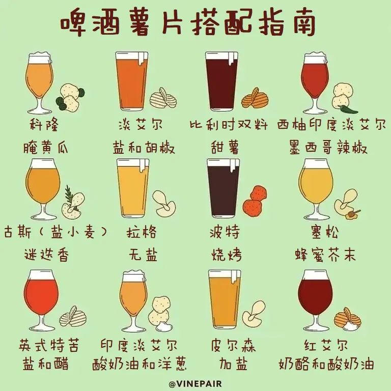 随便举个栗子,俺会用味道清淡的薯片配印度淡色艾尔,或者口味比较重的薯片配拉格