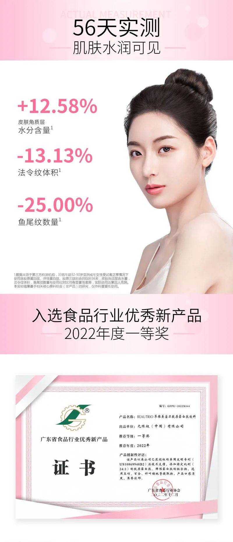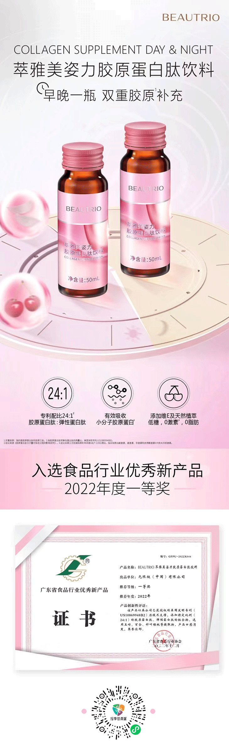 萃雅美姿力胶原蛋白肽饮料,入选食品行业优秀新产品2022年度一等奖!