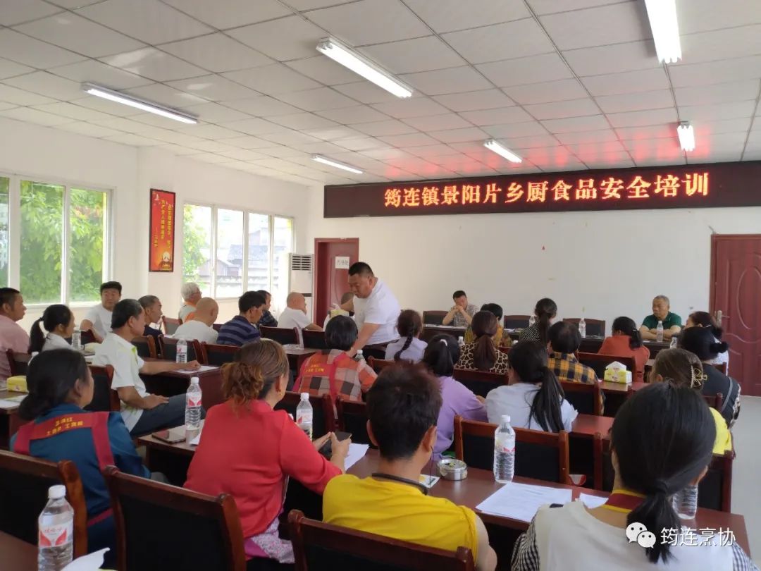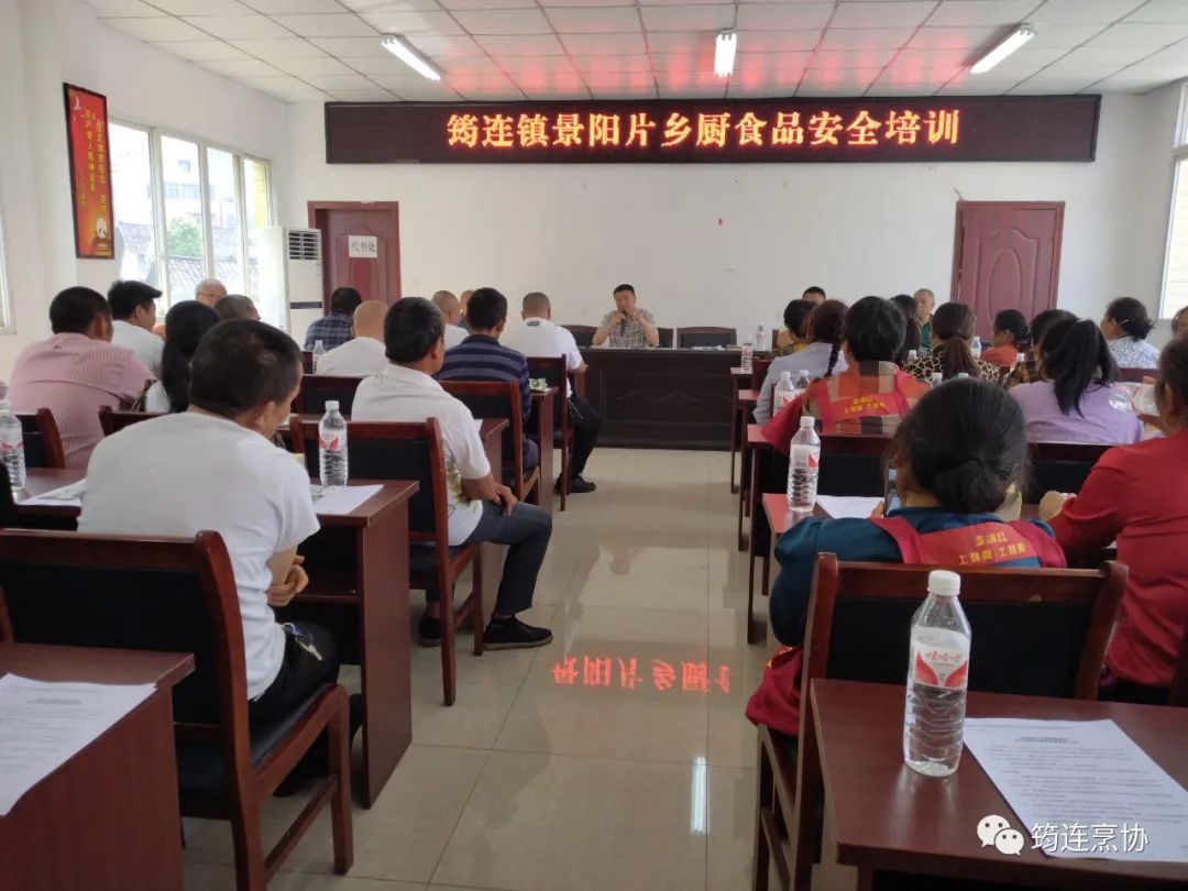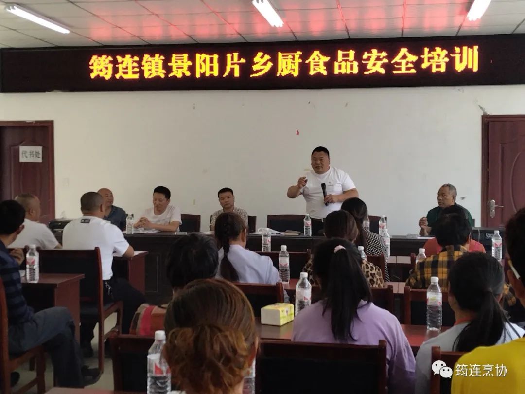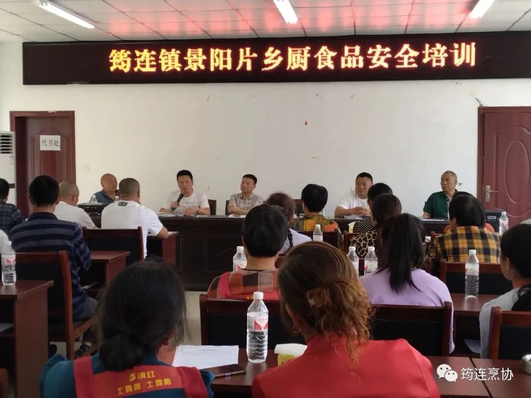 就近期出现的食品中毒事件,5月3日,筠连县餐饮烹饪行业协会与筠连县筠连镇红权村村民委会在村会议室组织筠连镇景阳片乡厨食品安全培训。协会领导杨少佰、范荣、王高兴参加了会议,会议由红权村周主任主持,约50人参加了培训会。