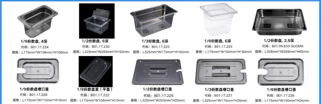 亚克力款:高透材质,直观展示食材,平盖、槽口盖可选,保鲜与展示两不误。