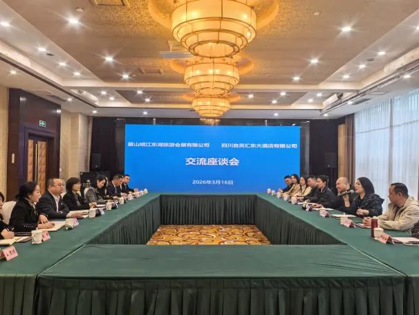 近日,自贡文旅集团汇东大酒店一行赴眉山岷江东湖旅游会展公司开展座谈交流,双方围绕酒店运营提质、文旅融合创新、职工疗休养拓展等领域深入研讨。眉山文旅集团党委副书记、总经理陈欣参加。