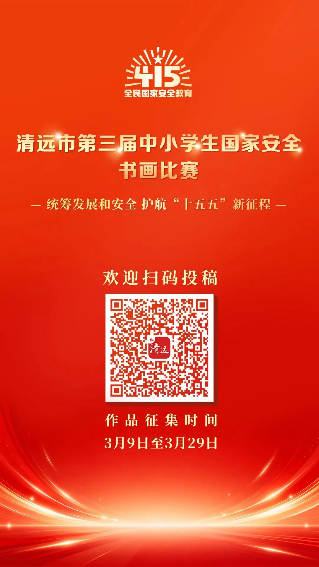 就能参加清远市第三届中小学生国家安全书画比赛