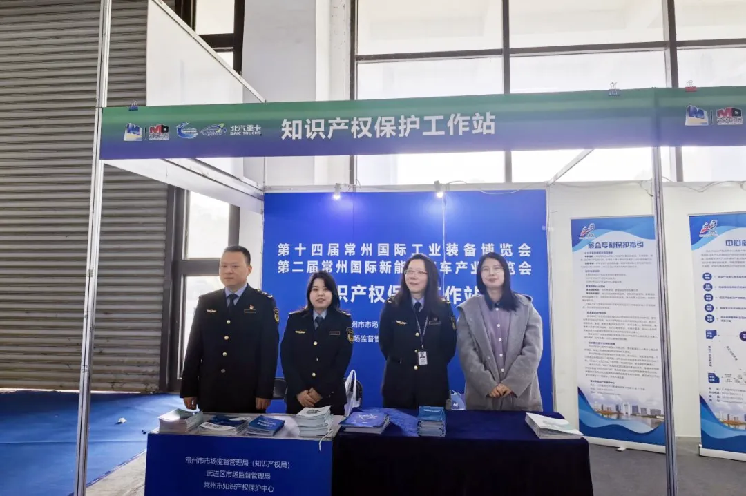 3月18—3月20日,第十四届常州国际工业装备博览会暨第二届常州国际新能源汽车产业博览会在常州西太湖国际博览中心隆重举行。为加强展会知识产权保护,常州市知识产权保护中心(以下简称“保护中心”)联合常州市市场监督管理局(知识产权局)及武进区市场监督管理局入驻博览会现场,全面开展知识产权保护与宣传工作。