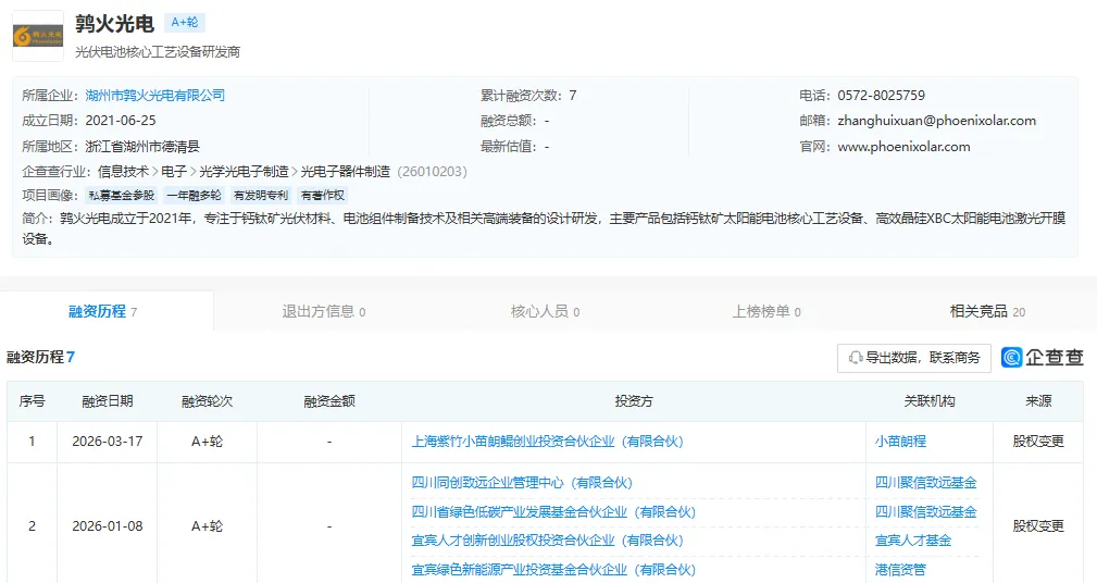 据企查查获悉,2026年3月17日,湖州市鹑火光电有限公司再度完成融资,投资方为小苗朗程,金额未披露。