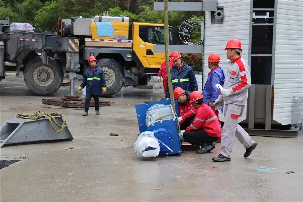 3月18日,重庆市楷晟建材有限公司,工人在进行设备吊装作业。