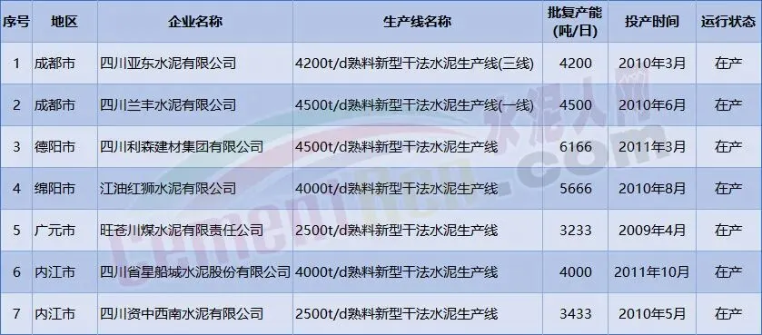 补齐产能的水泥熟料生产线明细