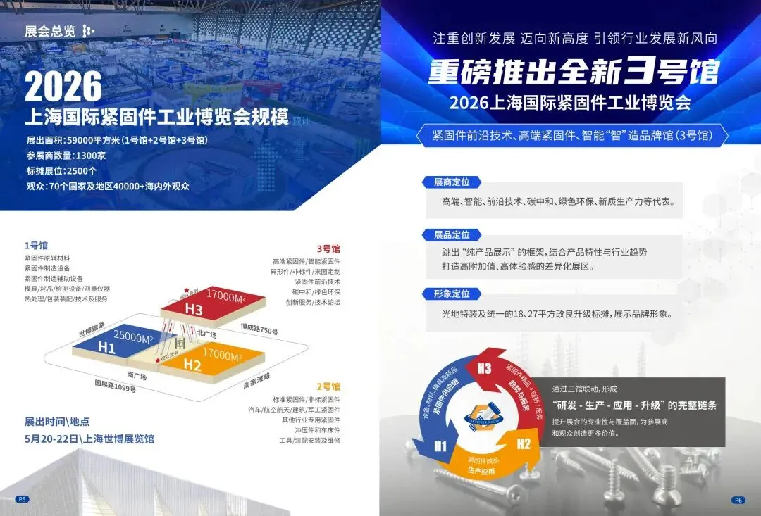 作为紧固件行业的年度盛会,2026上海国际紧固件工业博览会(5.20-22)不仅为全球紧固件企业提供了展示实力、对接商机的舞台,更凝聚了行业共识,推动产业资源整合与技术迭代。此次展会的成功举办,进一步巩固了中国在全球紧固件产业中的核心地位,助力行业突破发展瓶颈、培育新的增长动能,为全球紧固件产业高质量发展注入持久活力。展会期间,各参展企业、采购商与行业专家齐聚一堂,共话产业未来,共绘紧固件行业创新发展新蓝图。