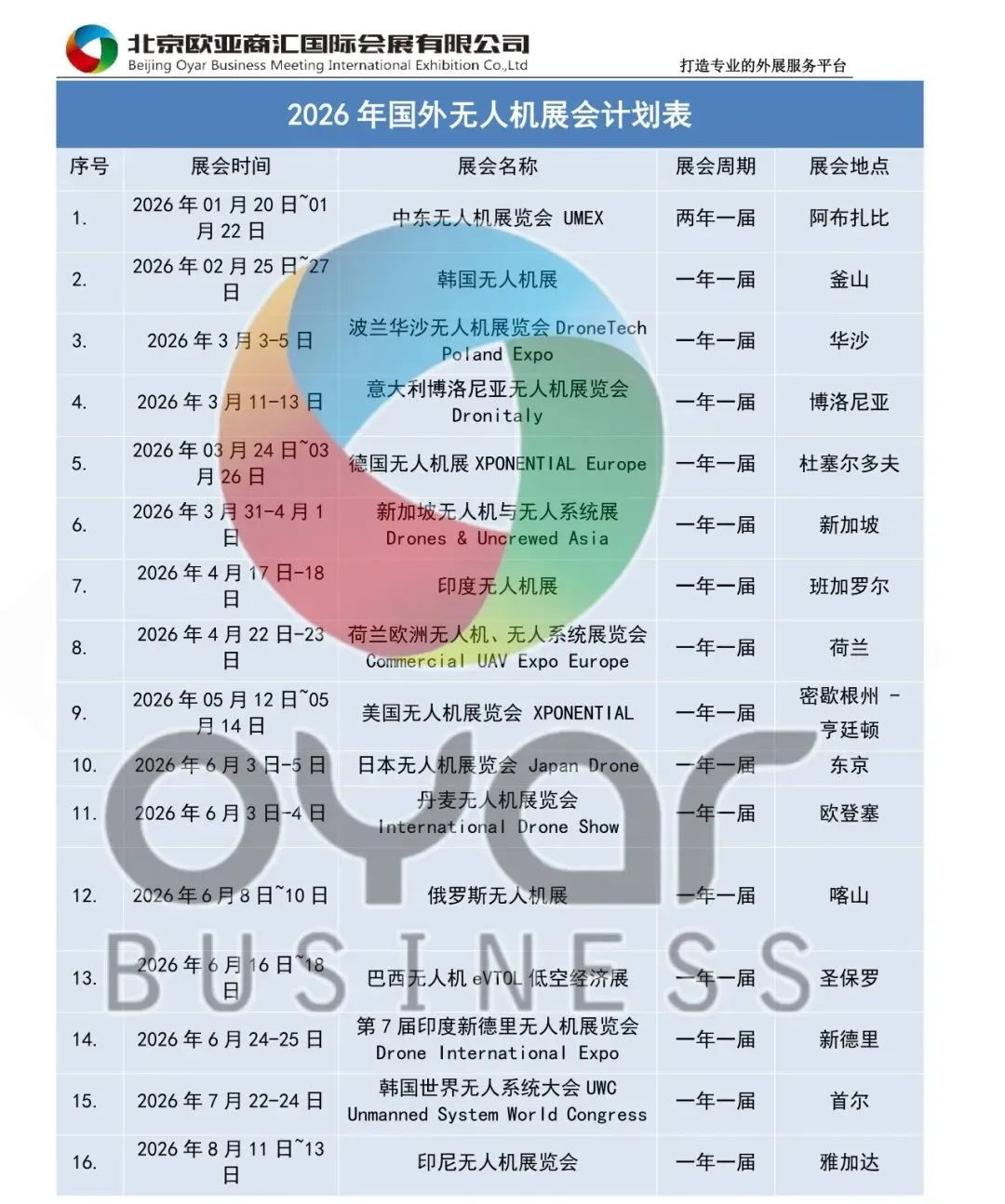 2026年国外无人机展会计划表