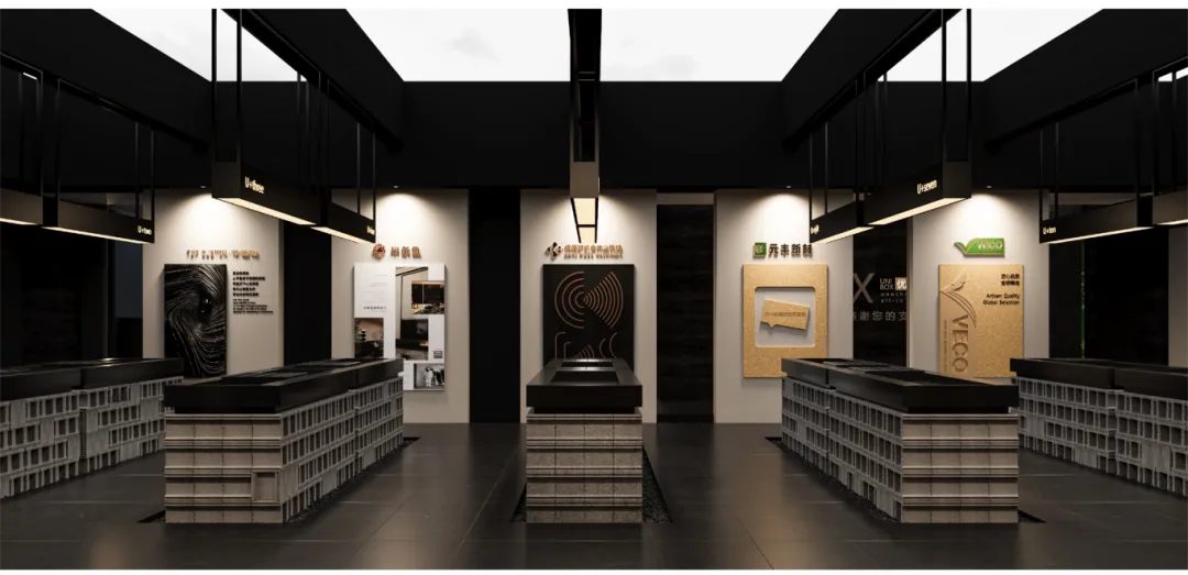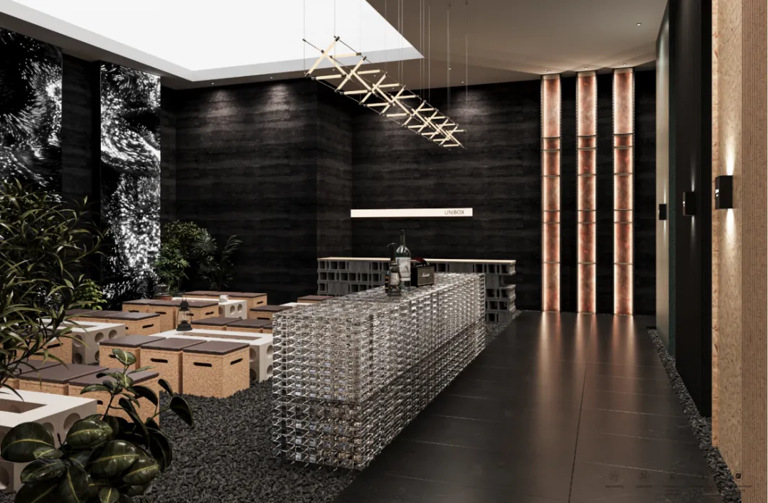 设计机构半条鱼携手欣百特、元丰新材、VECO板材、布同高定封边、新凯合机械、佐迪饰面、爱博装饰纸、华霖装饰纸、未来本色,重磅推出 UNIBOX 联合策展区。以“人与自然和谐共生”为主题,用独出心裁的展陈手法,解构材料和空间语言,呈现从材料、制造到成品的完整定制家居产业链。