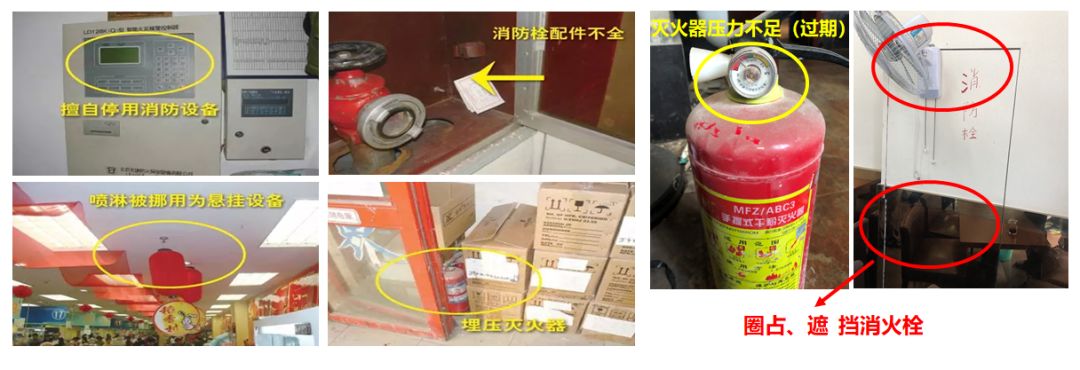 任何单位、个人不得损坏、挪用或者擅自拆除、停用消防设施、器材,不得埋压、圈占、遮挡消火栓或者占用防火间距,不得占用、堵塞、封闭疏散通道、安全出口、消防车通道。人员密集场所的门窗不得设置影响逃生和灭火救援的障碍物。