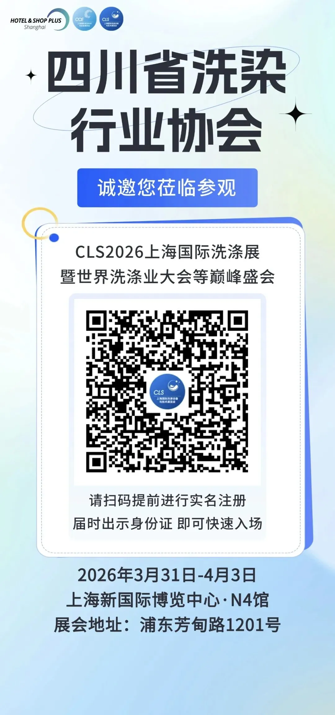 为助力行业同仁把握绿色化、智能化发展新机遇,加强跨区域行业交流协作,四川省洗染行业协会将组织会员企业及行业伙伴,共同参与2026年3月30日至4月3日在上海举办的系列重磅活动,本次活动汇聚洗涤领域标杆企业与核心管理者,联动多展同步开展,提供一站式资源对接渠道,助力企业拓展新业务、链接新资源。诚邀各企业积极报名参与!