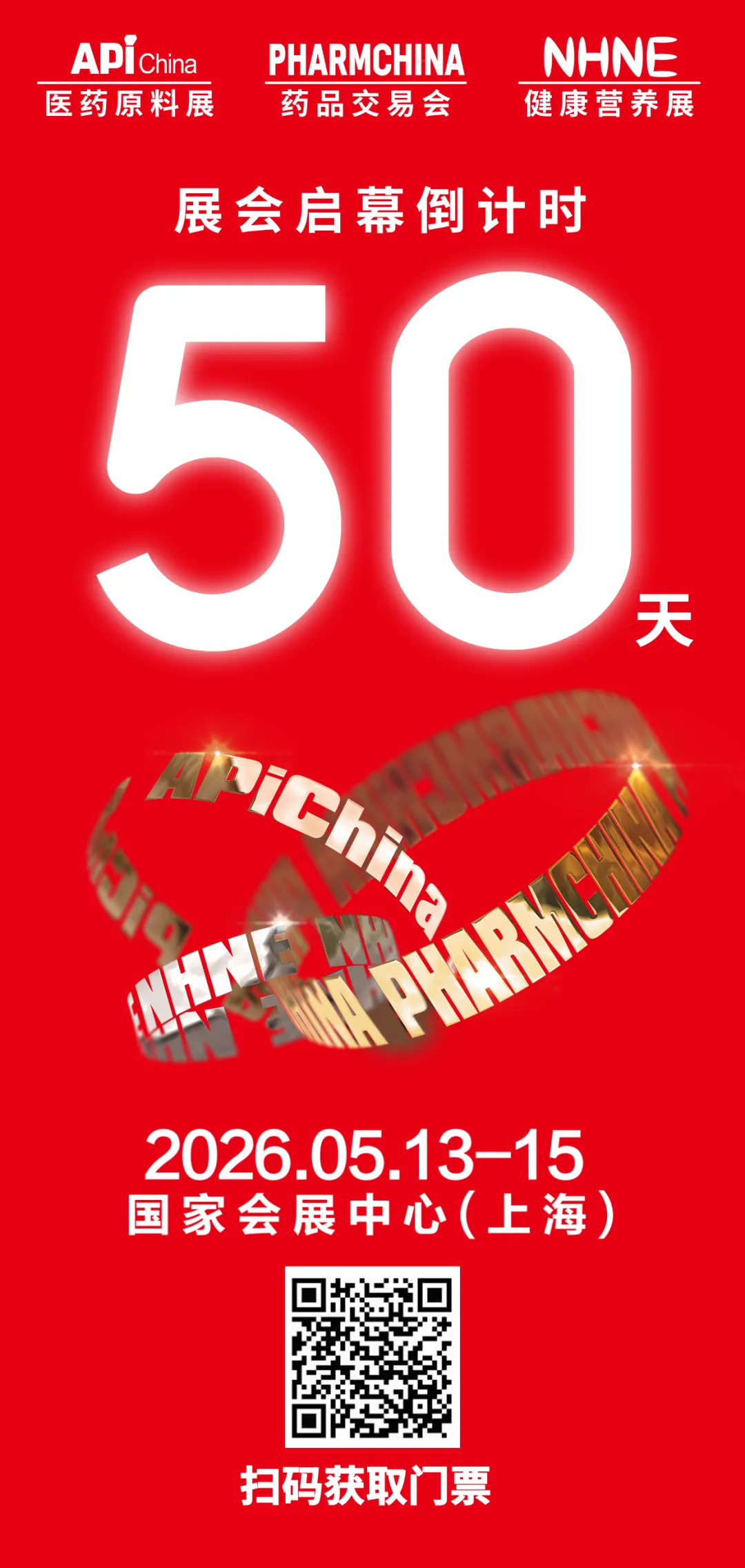 第94届中国国际医药原料药/中间体/包装/设备交易会(API China)、第92届全国药品交易会(PHARMCHINA)、中国国际健康营养博览会(NHNE)将携手于2026年5月13-15日,在上海 · 国家会展中心盛大举办!三展联合强势赋能医药、健康营养全产业链。