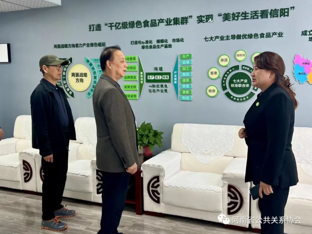 4月25日至26日,河南省公共关系协会会长、河南省人大常委会原副秘书长、办公厅主任夏林,中国证监会河南监管局原党委书记、局长侯苏庆,副会长兼秘书长、河南艺术职业学院原副院长李悦军等一行走访信阳市绿色食品行业协会、鑫厦建设、车云顶峰三家单位。