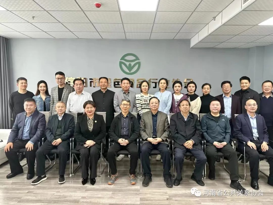 河南省公共关系协会副会长、信阳市绿色食品行业协会会长潘道荣向夏林会长一行介绍了信阳市绿色食品行业协会的发展历程、组织架构和主要工作开展情况。强调,受市政府赋能,协会积极参与全市百万亩优质弱筋小麦和百万亩优质水稻“两个一百万”产业园建设,成为“政府主导、国有控股、民企参与、协会统筹”乡村振兴(万企兴万村)产业发展“信阳模式”的探索者和实践者。