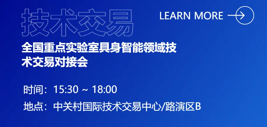 2026中关村论坛年会中关村国际技术交易大会全国重点实验室具身智能领域技术交易对接会,将于3月25日下午在中关村国际技术交易中心举办。
