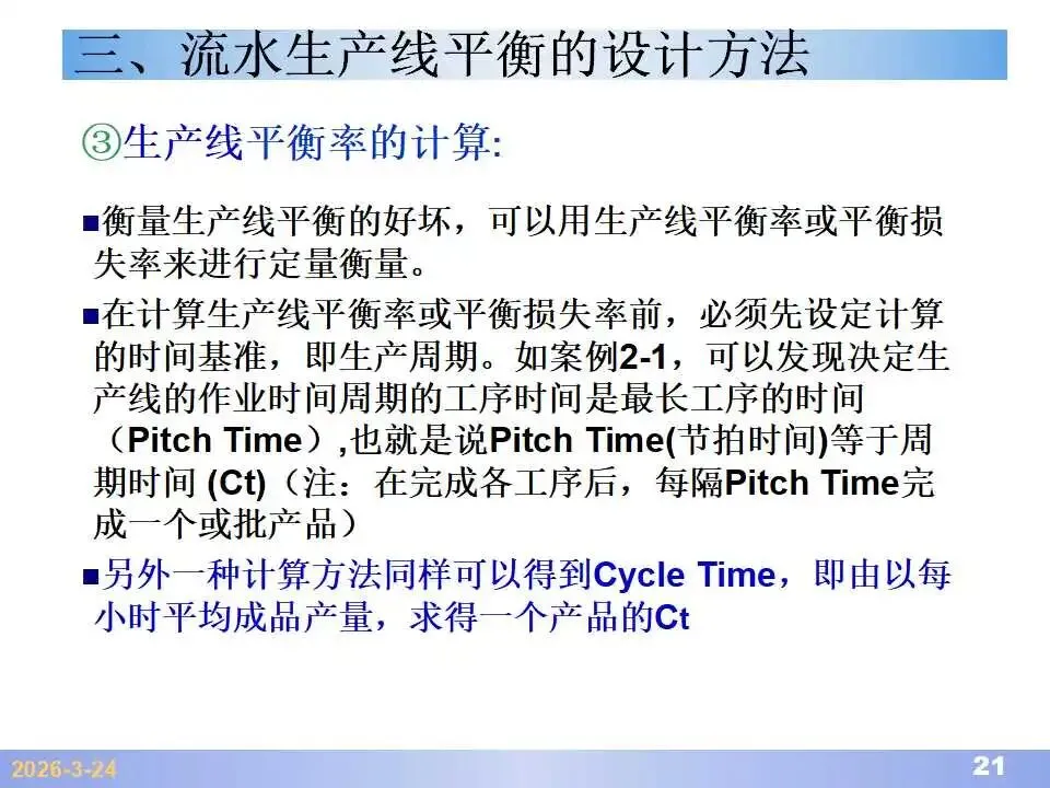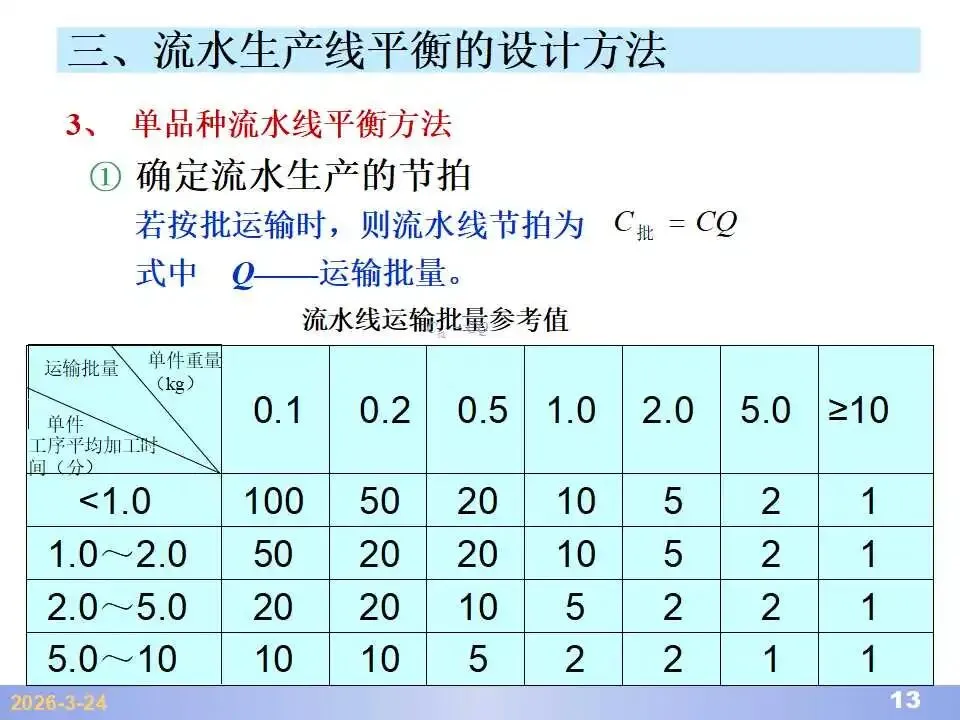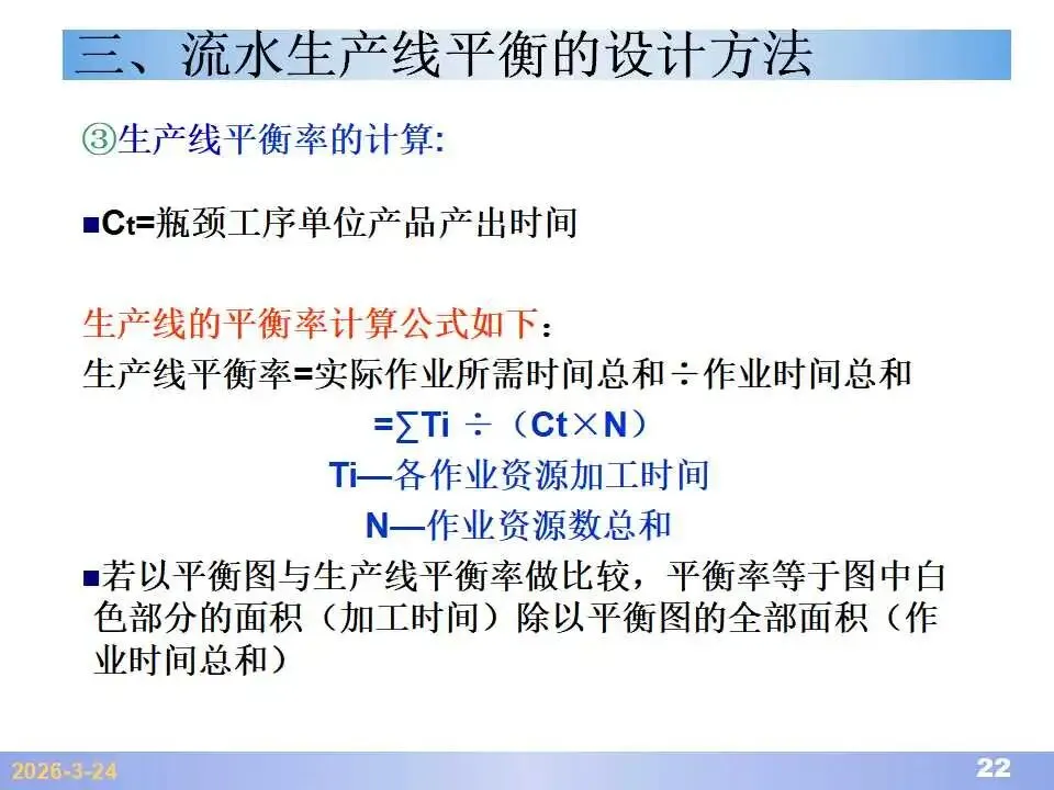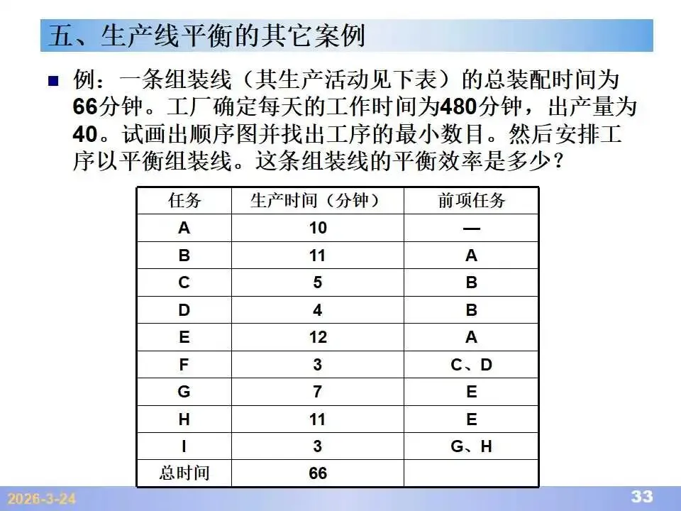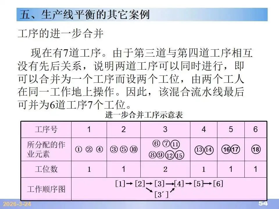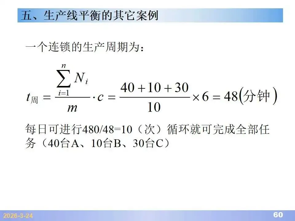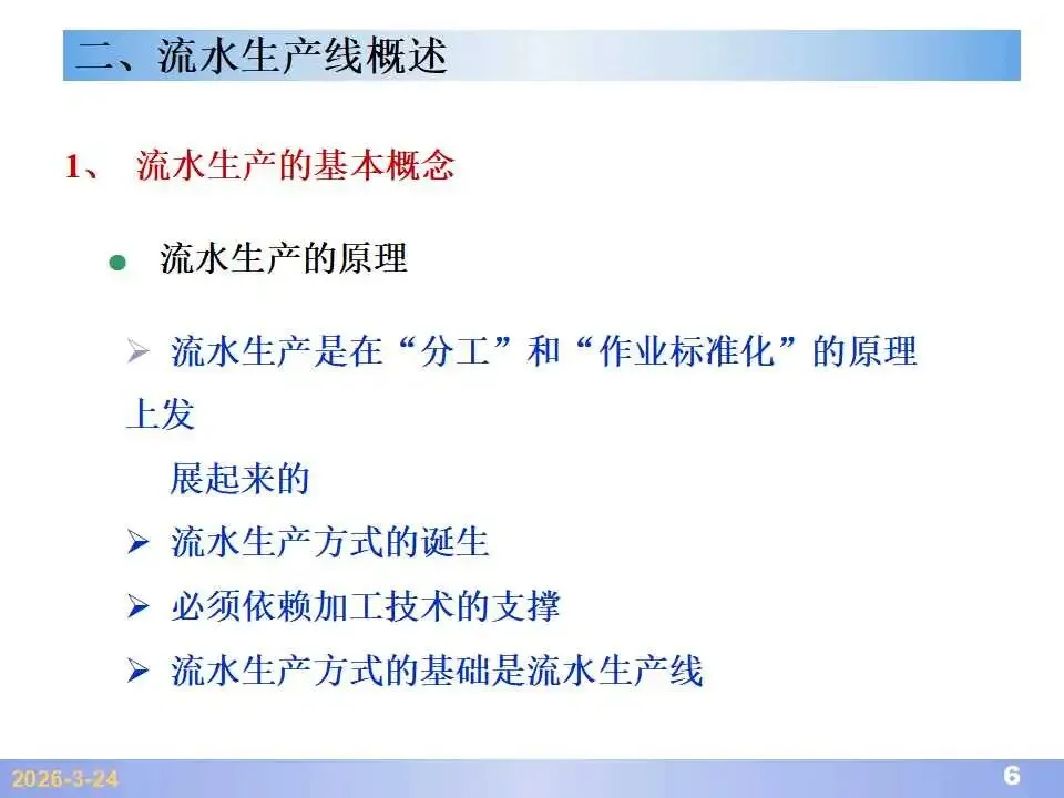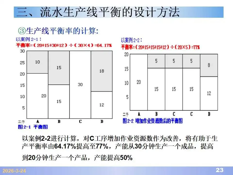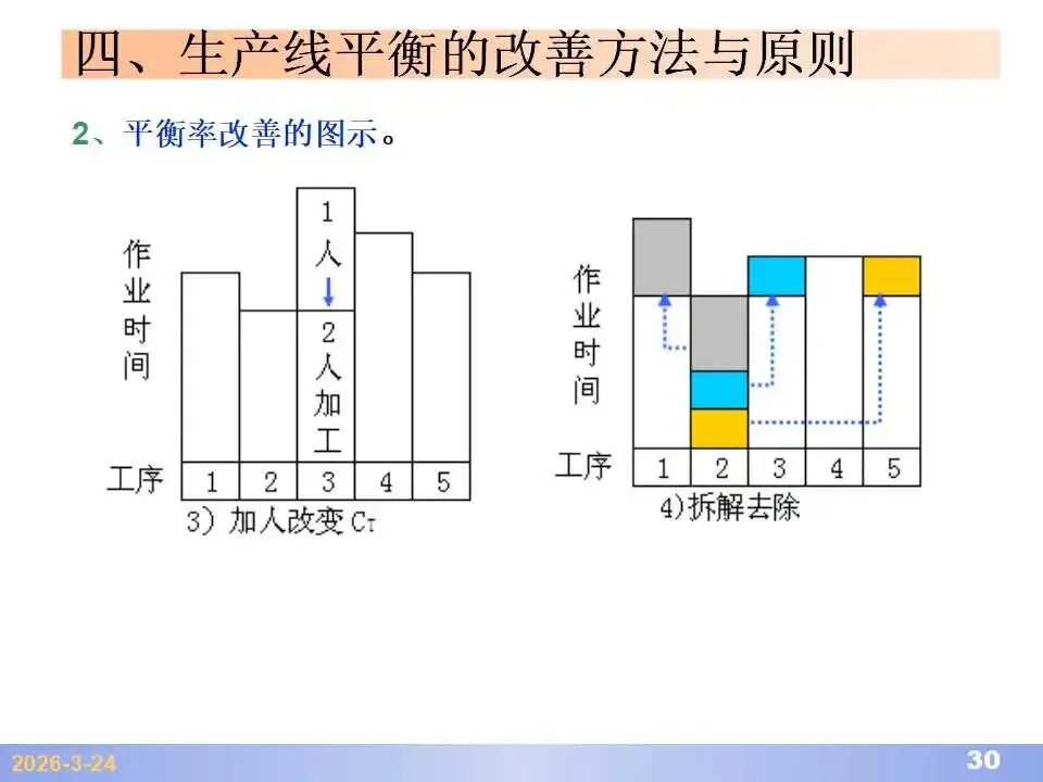 本文系统阐述了生产线平衡的理论基础、分析方法与改善实践,是工业工程(IE)在制造现场应用的重要内容。内容指出,生产线平衡旨在通过调整各工序作业负荷,使作业时间趋于一致,从而实现生产同步化,支撑“一个流”与柔性生产系统的落地。培训首先介绍了流水生产线的类型、组织条件与设计步骤,随后围绕单品种与多品种流水线,详细讲解了节拍计算、平衡图绘制、平衡率与平衡损失率的量化方法,并结合木桶理论、瓶颈识别、工序合并等原则,提出了多种改善策略,如瓶颈工序优化、作业内容重组、资源再配置等。在多品种流水线部分,重点介绍了可变流水线与混合流水线的平衡方法,包括代表产品换算法、劳动量比例分配法、综合作业图构建、生产比倒数法编排投产顺序等。培训强调,生产线平衡不仅是提升效率、缩短周期、减少在制品的关键手段,更是实现柔性制造、平准化生产与持续改善的基础,需要结合动作分析、时间分析、布局优化等IE工具系统推进。