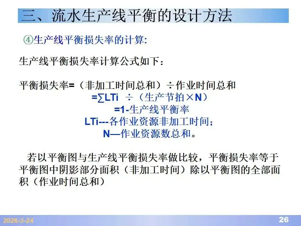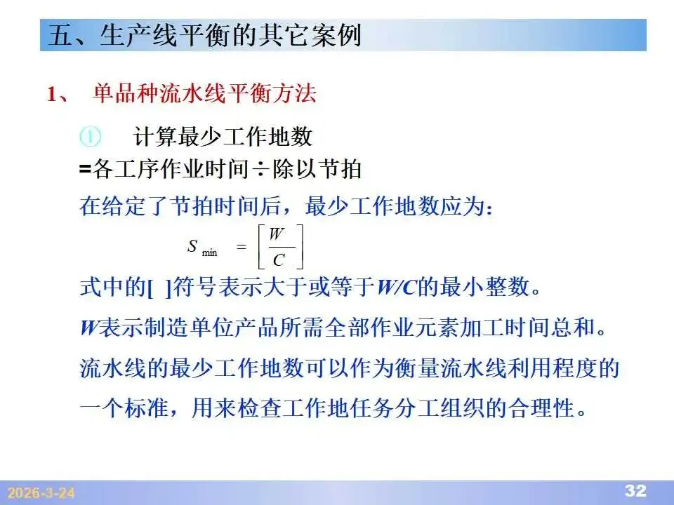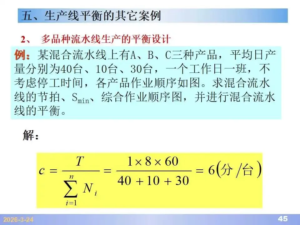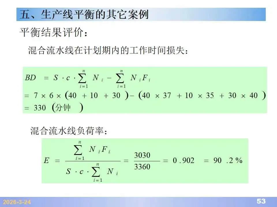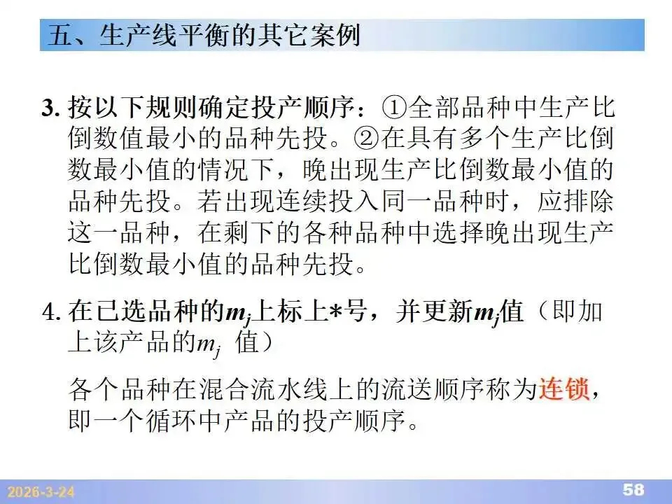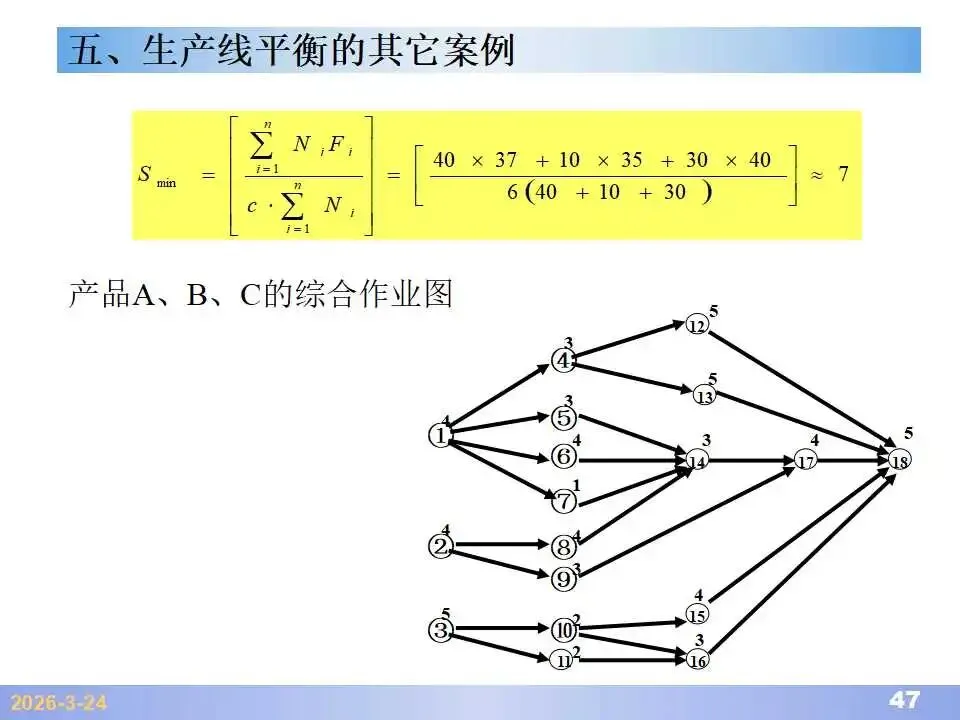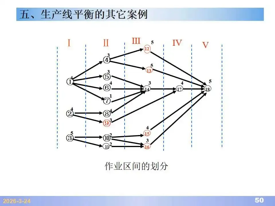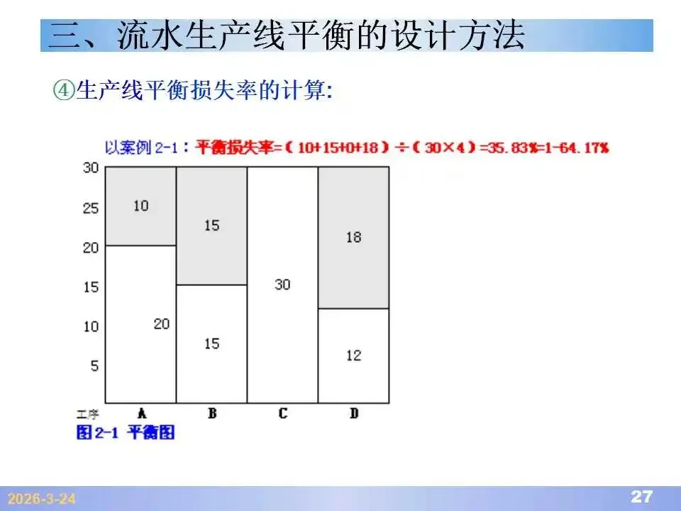 本文系统阐述了生产线平衡的理论基础、分析方法与改善实践,是工业工程(IE)在制造现场应用的重要内容。内容指出,生产线平衡旨在通过调整各工序作业负荷,使作业时间趋于一致,从而实现生产同步化,支撑“一个流”与柔性生产系统的落地。培训首先介绍了流水生产线的类型、组织条件与设计步骤,随后围绕单品种与多品种流水线,详细讲解了节拍计算、平衡图绘制、平衡率与平衡损失率的量化方法,并结合木桶理论、瓶颈识别、工序合并等原则,提出了多种改善策略,如瓶颈工序优化、作业内容重组、资源再配置等。在多品种流水线部分,重点介绍了可变流水线与混合流水线的平衡方法,包括代表产品换算法、劳动量比例分配法、综合作业图构建、生产比倒数法编排投产顺序等。培训强调,生产线平衡不仅是提升效率、缩短周期、减少在制品的关键手段,更是实现柔性制造、平准化生产与持续改善的基础,需要结合动作分析、时间分析、布局优化等IE工具系统推进。