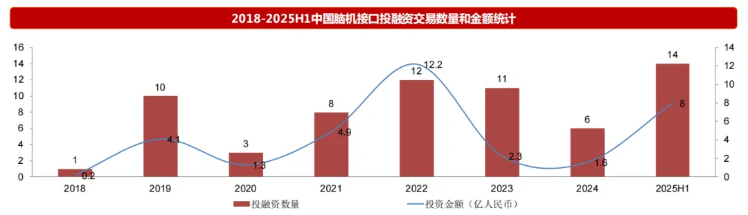 根据深圳市人工智能产业协会研究部的调查数据,2025H1我国脑科学与类脑智能领域投融资表现活跃,共发生14起融资事件,总融资规模预计超过8亿元人民币。