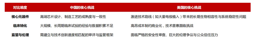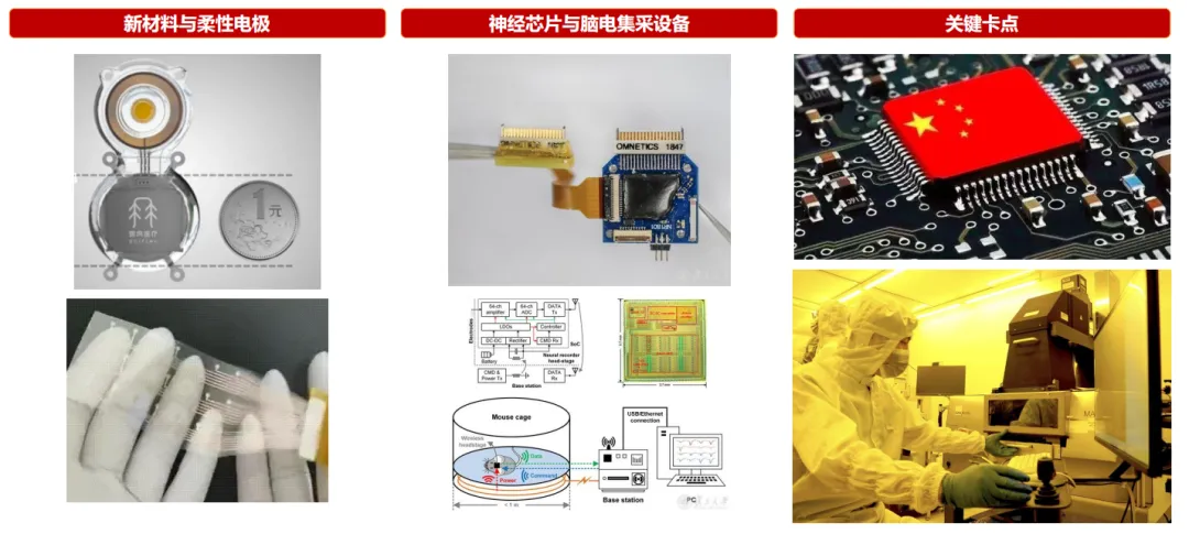 具体的竞争体现在核心元器件和关键技术卡点上: 1)新材料与柔性电极;2)神经芯片与脑电集采设备;3)关键卡点