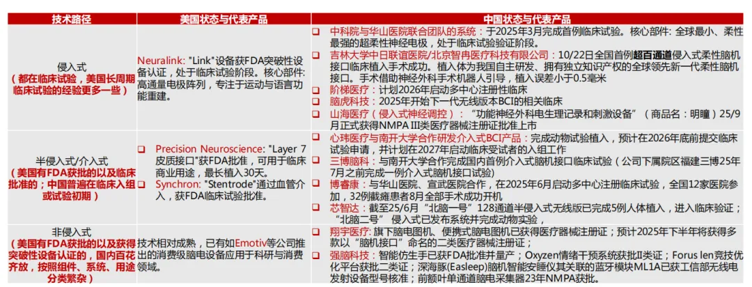 3 中美进程对比:脑机不断创新,从组件及不同技术路径的探索上看中美进程、临床及获批情况