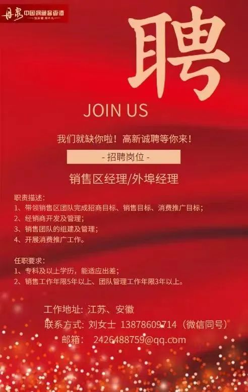 贵州醇酒业销售公司安徽省区诚聘优秀人才!