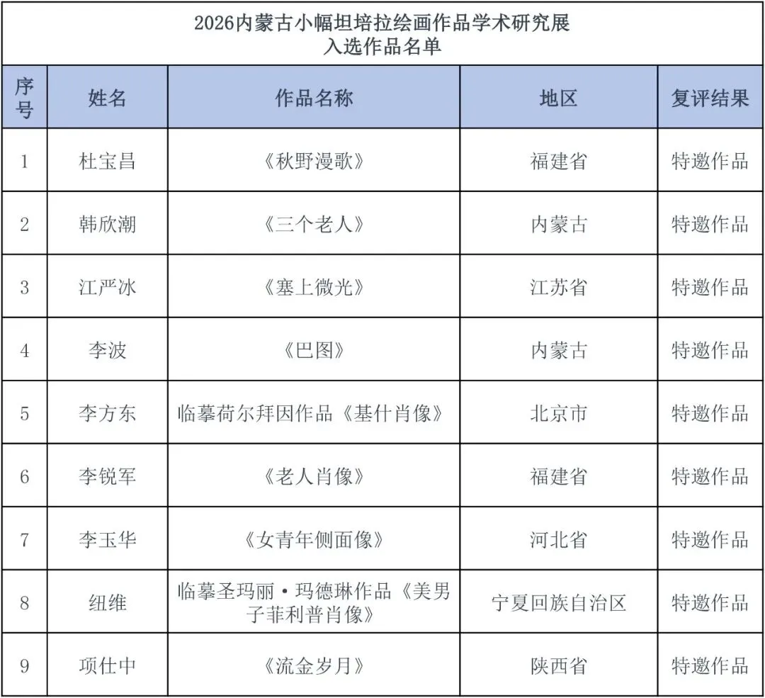 展览资讯‖2026内蒙古小幅坦培拉绘画作品学术研究展复评结果公布