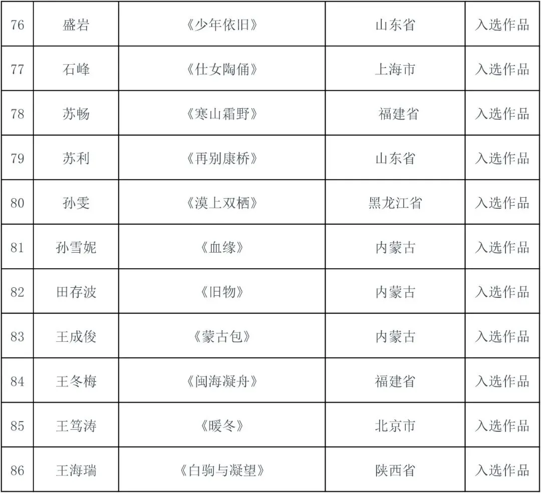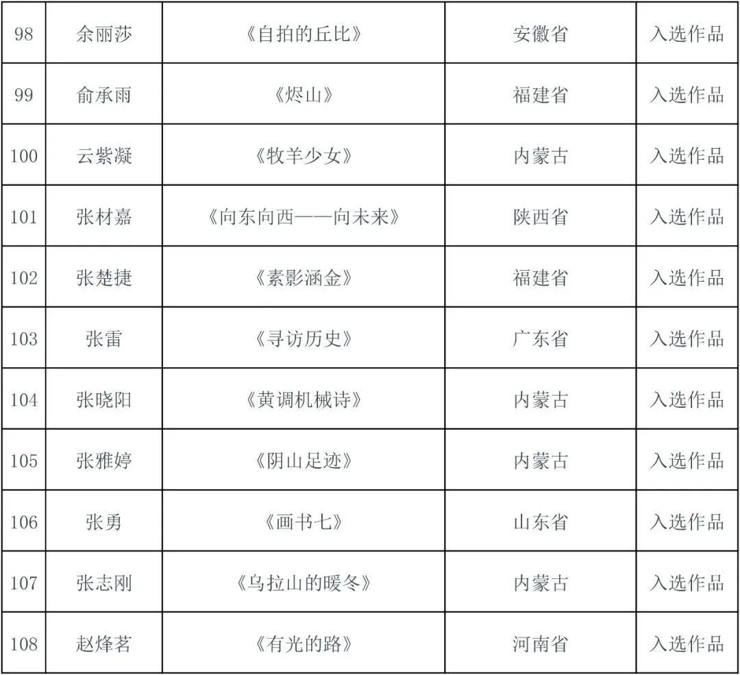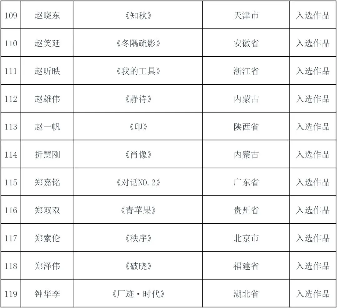 件入选作品(含特邀作品),具体名单详见附件。