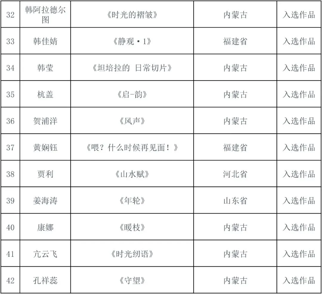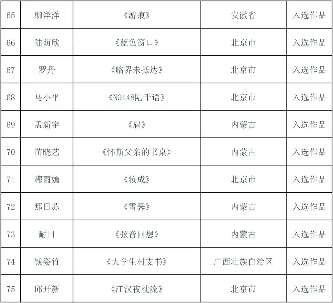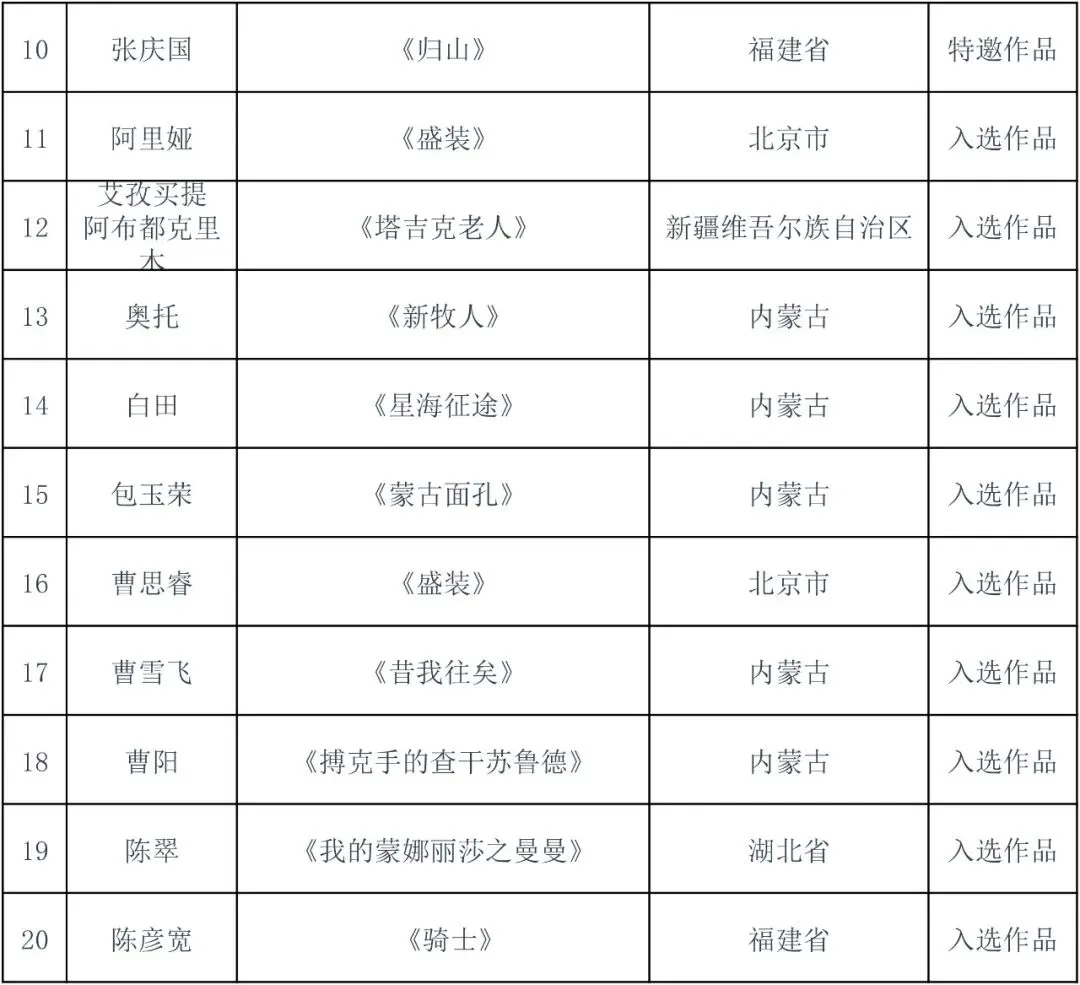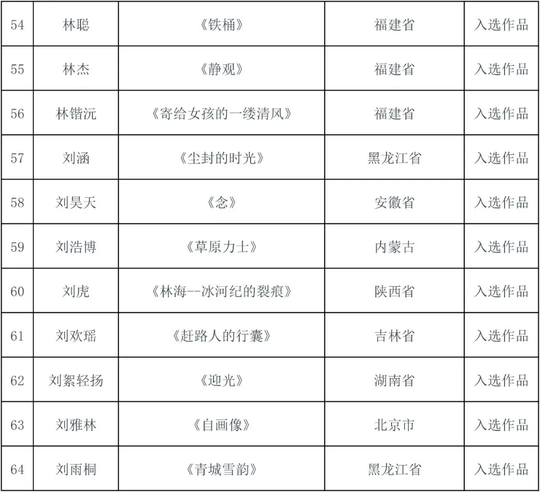 件入选作品(含特邀作品),具体名单详见附件。