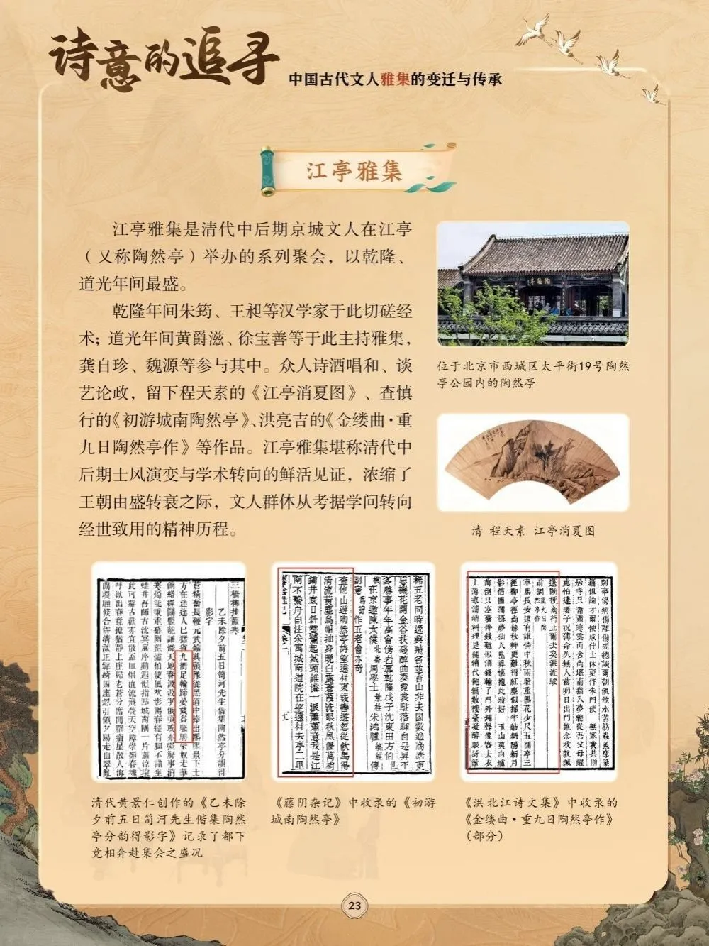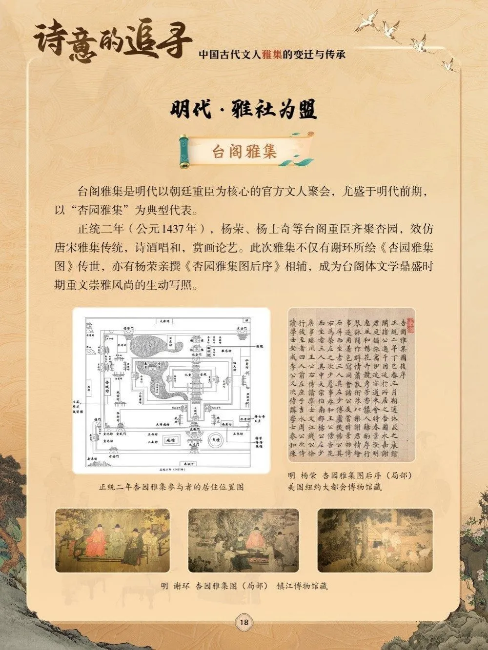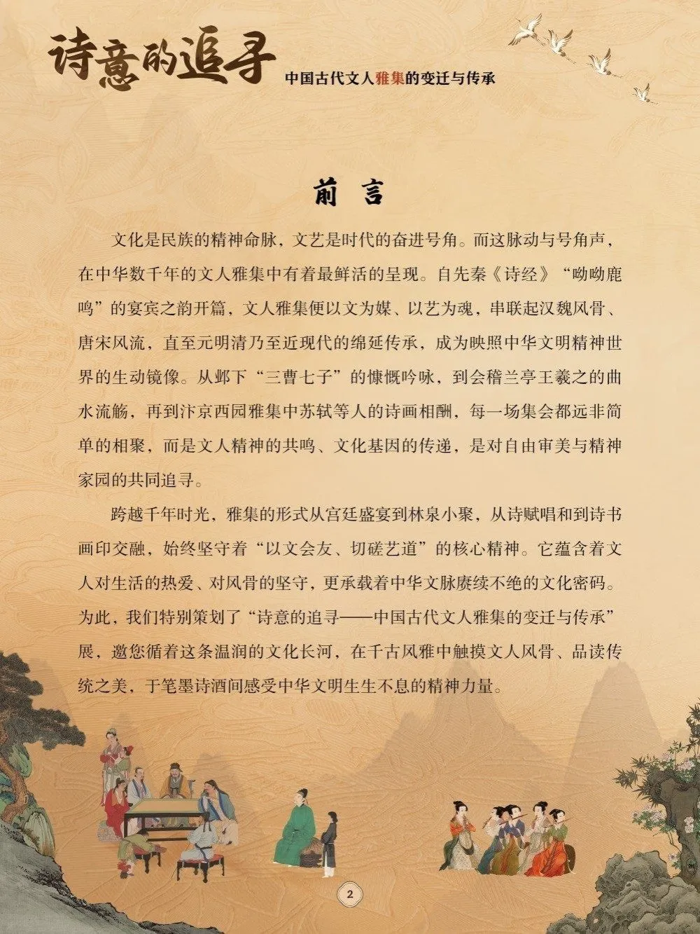 跨越千年时光,雅集的形式从宫廷盛宴到林泉小聚,从诗赋唱和到诗书画印交融,始终坚守着“以文会友、切磋艺道”的核心精神。它蕴含着文人对生活的热爱、对风骨的坚守,更承载着中华文脉赓续不绝的文化密码。为此,我们特别策划了“诗意的追寻——中国古代文人雅集的变迁与传承”展,邀您循着这条温润的文化长河,在千古风雅中触摸文人风骨、品读传统之美,于笔墨诗酒间感受中华文明生生不息的精神力量。