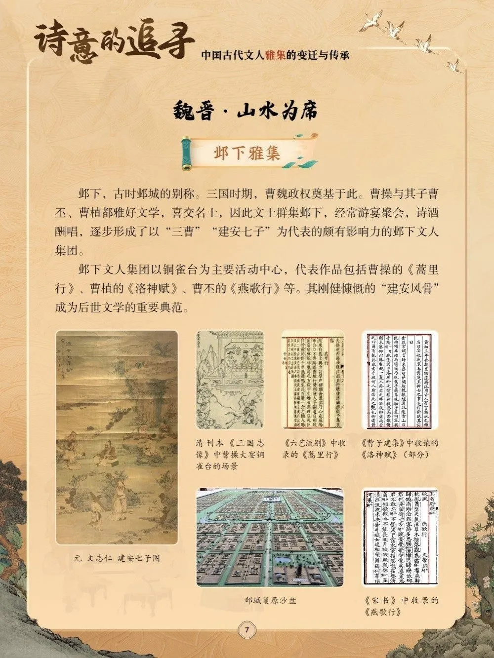 文化是民族的精神命脉,文艺是时代的奋进号角。而这脉动与号角声,在中华数千年的文人雅集中有着最鲜活的呈现。自先秦《诗经》“呦呦鹿鸣”的宴宾之韵开篇,文人雅集便以文为媒、以艺为魂,串联起汉魏风骨、唐宋风流,直至元明清乃至近现代的绵延传承,成为映照中华文明精神世界的生动镜像。从邺下“三曹七子”的慷慨吟咏,到会稽兰亭王羲之的曲水流觞,再到汴京西园雅集中苏轼等人的诗画相酬,每一场集会都远非简单的相聚,而是文人精神的共鸣、文化基因的传递,是对自由审美与精神家园的共同追寻。