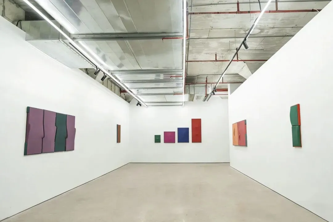 几何结构在这里并不象征秩序的稳定性。相反,它们成为承载压力的容器:平整的色面在中心隆起、凹陷或折转,形成轻微却明确的偏移。这些变化并非突兀的破坏,而是在既定结构中发生的调整,使作品始终保持在平面与体量、绘画与空间之间的临界状态。