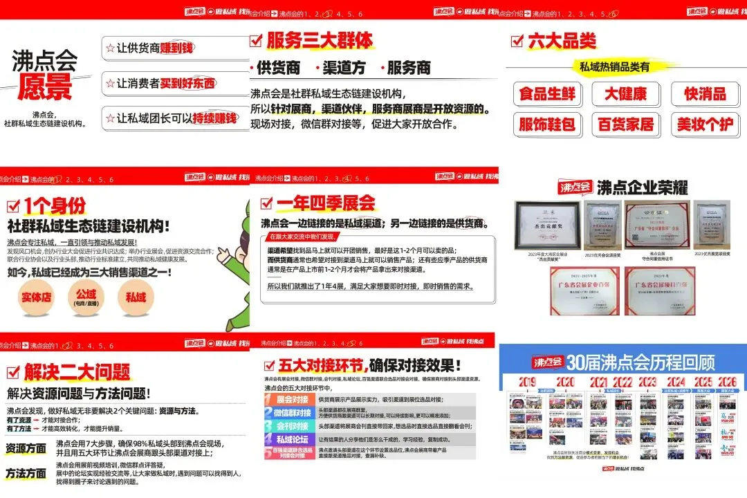 沸点会作为国内领先的私域生态链服务平台,长期致力于链接品牌、团长、平台与供应链资源,推动私域行业高效、可持续发展。旗下私域展会、团长大会、趋势论坛等活动,已成为行业公认的年度风向标。