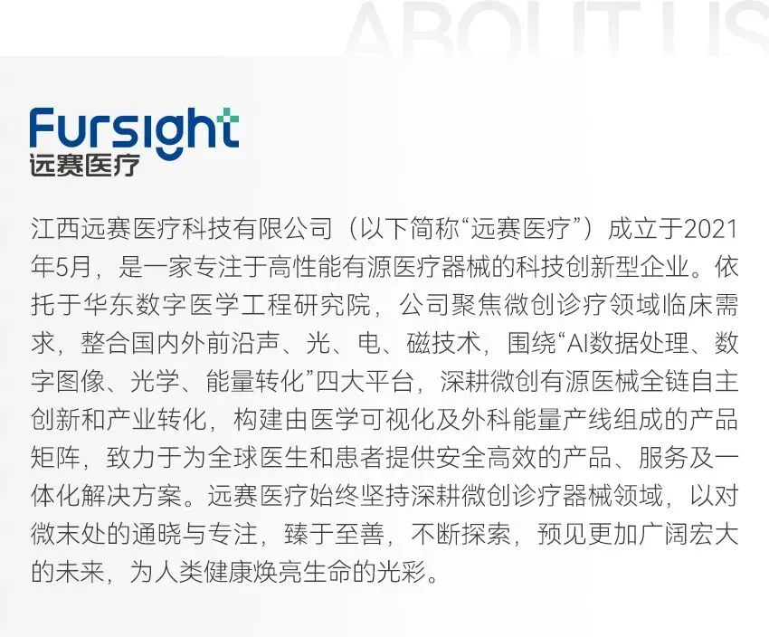 自创立伊始,远赛医疗便深耕数字医学技术领域,通过持续的技术攻关和产业化实践,成功打造了独具特色的创新研发体系。公司以"创新驱动发展"为核心理念,不断推动医疗器械领域新质生产力的突破升级,不仅为临床诊疗提供更精准高效的解决方案,更为国家数字经济发展战略的实施贡献了重要力量。未来,远赛医疗将继续发挥行业引领作用,助力我国医疗器械产业向高端化、智能化方向迈进。