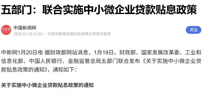 为支持中小微企业投资扩产、激发经济活力,财政部发布《关于实施中小微企业贷款贴息政策的通知》(财金〔2026〕4号),明确多项贴息支持措施及操作细则。以下为政策核心要点梳理,方便企业快速get关键信息。