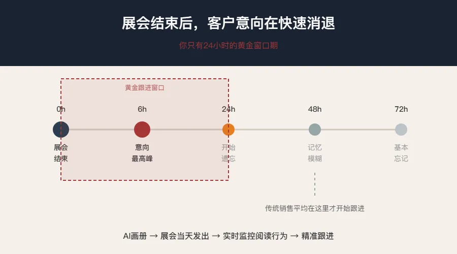 而客户在展会结束后的最高意向期,只有 24小时。