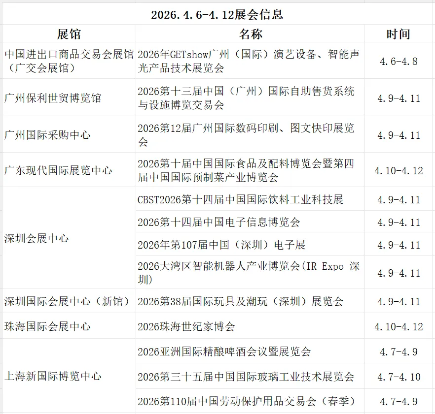 2026.4.6-4.12展会信息