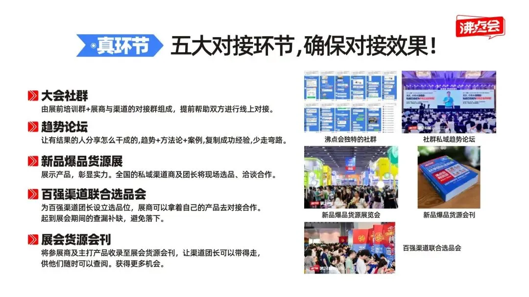不同于普通展会,沸点会2026年三大站始终围绕私域从业者核心需求设计,凭借十二年行业积淀与成熟运营模式,打造“有价值、高效率、强精准”的私域对接平台,核心亮点一目了然: