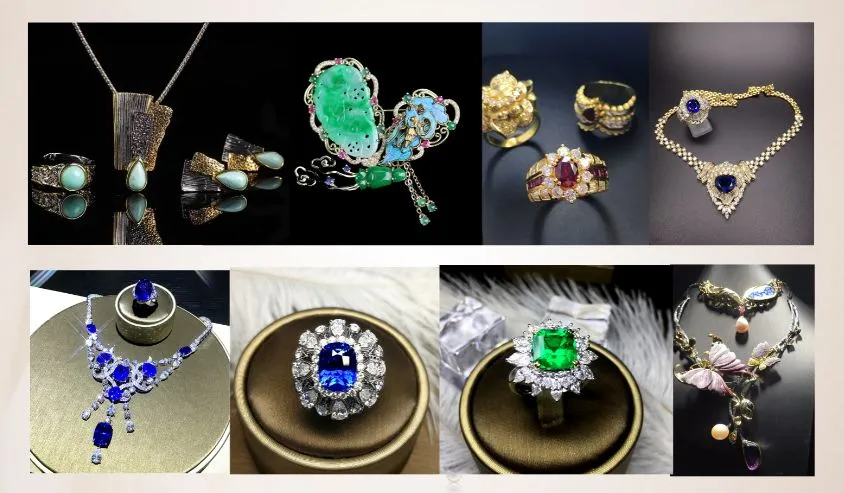 珠宝首饰:黄金、K金、铂金首饰、银饰、钯金首饰、设计师作品、成品镶嵌首饰等;