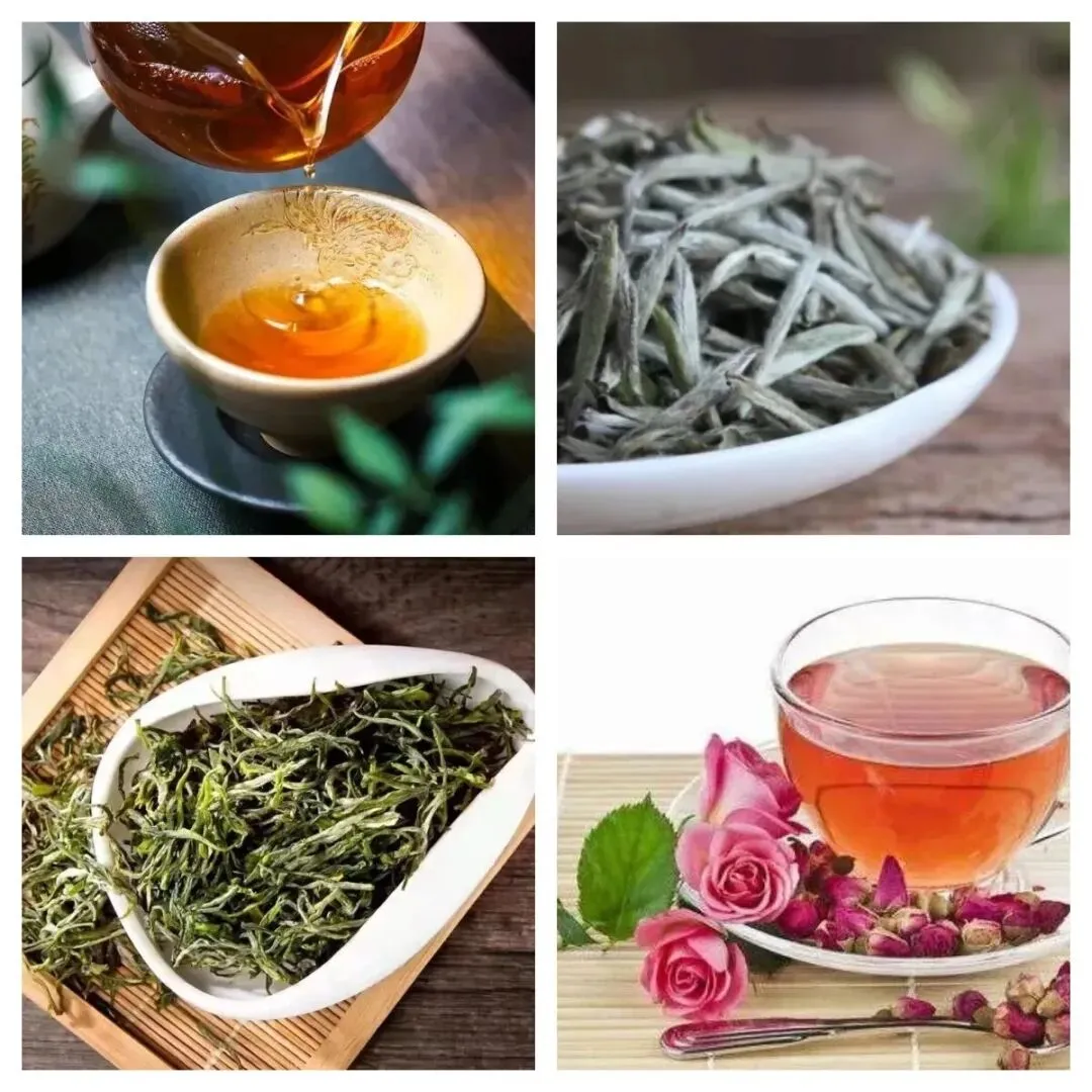 六⼤茶类:绿茶、红茶、⻩茶、⽩茶、乌⻰茶、⿊茶;