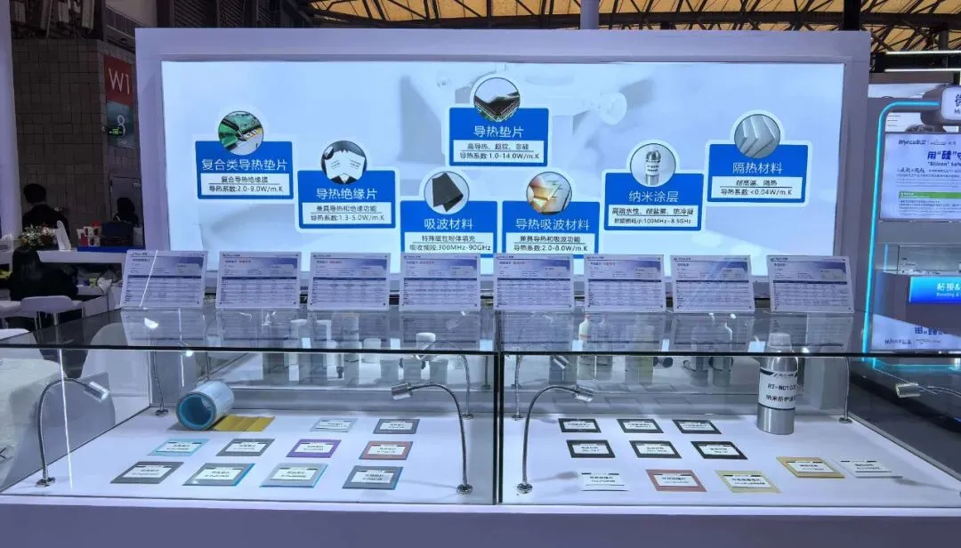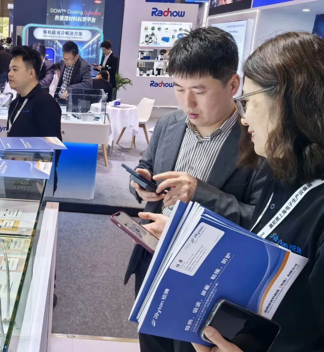 锐腾精心打造个性展示专区震撼亮相,导热、吸波、屏蔽等全系列明星产品悉数登场,全方位精准适配各类场景需求,直击行业核心难题,提供一站式解决方案。充分展现了锐腾在材料领域的技术积淀与创新实力,收获现场客商的广泛关注。