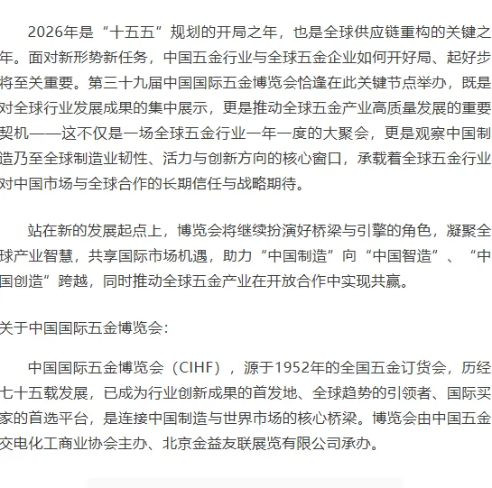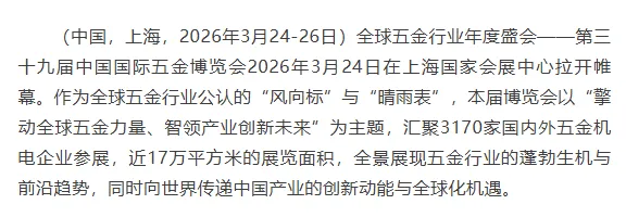 第三十九届中国国际五金博览会3月24日上海盛大开幕--擎动全球五金力量、智领产业创新未来 国际五金CIHF
