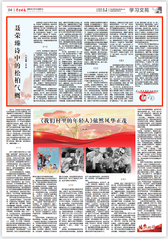 1985年,为纪念抗日战争胜利40周年,聂荣臻忆峥嵘岁月,写下《忆平型关大捷》:“集师上寨运良筹,敢举烽烟解国忧;潇潇夜雨洗兵马,殷殷热血固金瓯。东渡黄河第一战,威扫敌倭青史流;常抚皓首忆旧事,夜眺燕北几春秋!”前四句采用虚实结合、夹叙夹议的写法,后四句对此役给予评价和回顾,展现了八路军将士杀敌报国的爱国意志。首联叙述为平型关战役做准备的情形,一个“敢”字充分展现了八路军不怕牺牲的英雄气概和不畏强暴的抗战决心;颔联描绘了平型关战役的战斗过程,战士们以誓死报国的信念,顽强不屈的抗敌爱国意志,冒雨战寒、前仆后继、勇往直前,战斗环境的恶劣与战士们斗志旺盛,形成了鲜明对比;颈联高度评价了平型关大捷的历史意义,这是我军“东渡黄河”以来的“第一战”,“威扫敌倭”打破了日军不可战胜的神话,后来“首战平型关,威名天下扬”还写进了《八路军军歌》,平型关大捷永远“青史流芳”;尾联抚今追昔,抒发了“烈士暮年,壮心不已”的不朽革命情怀。