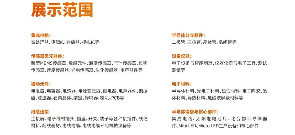 第107届中国电子展以“聚焦元质生产力 赋能元件强基”为主题,将继续以基础电子元器件为技术牵引,服务于5G、新能源、物联网、大数据、云计算、照明与显示安防、消费电子、智能制造、能源电子等应用行业。