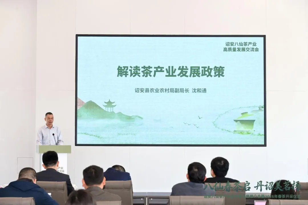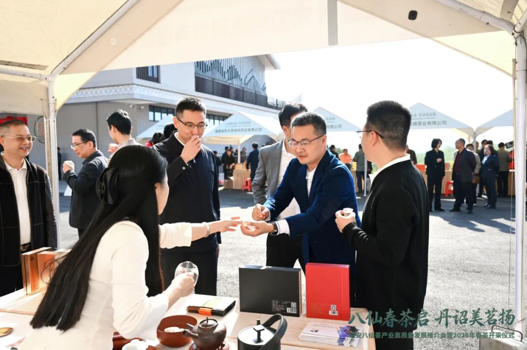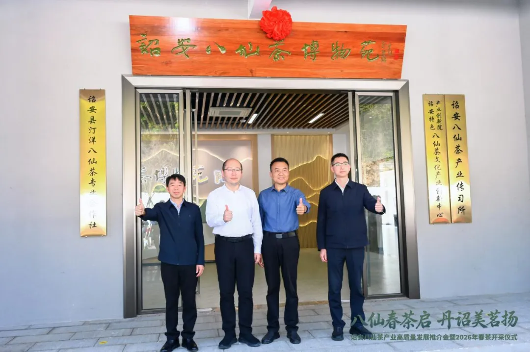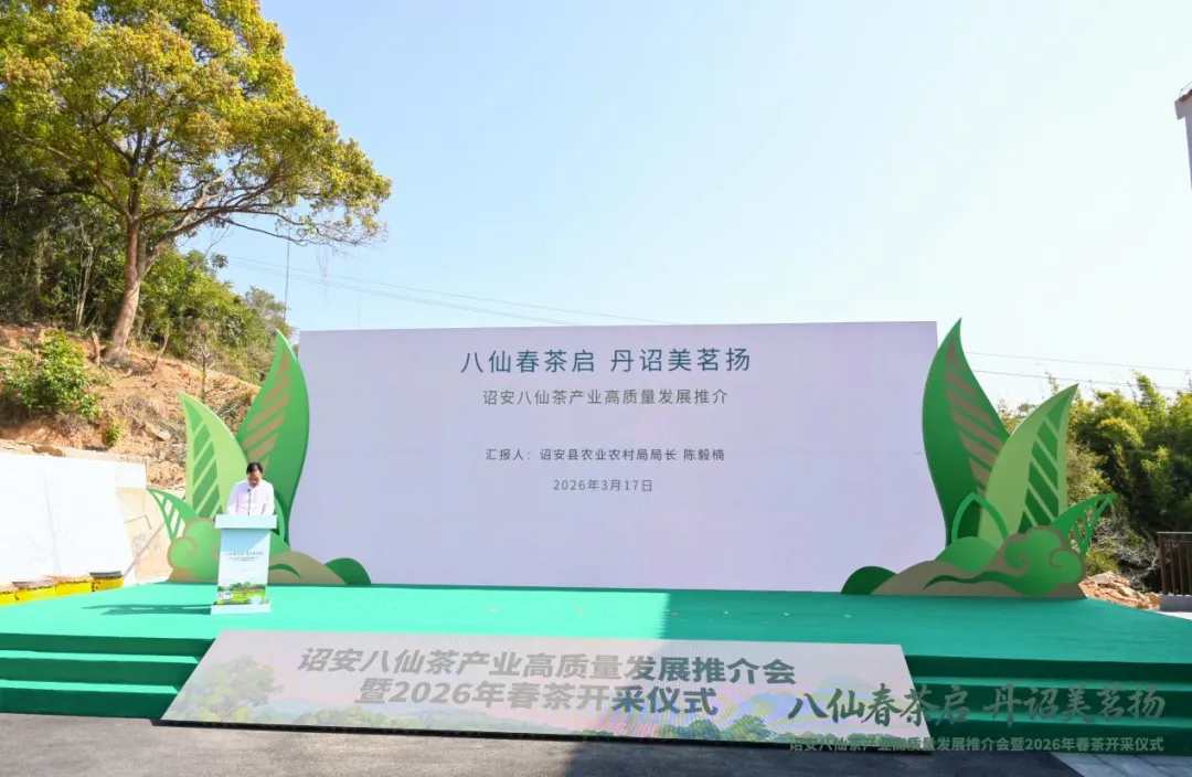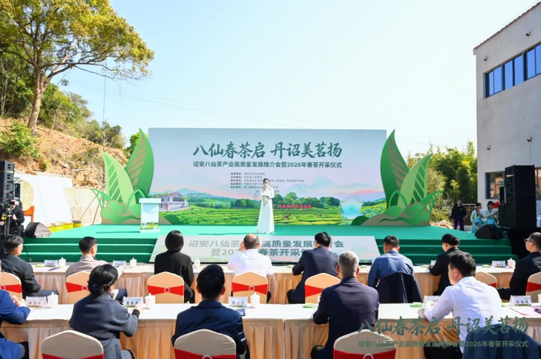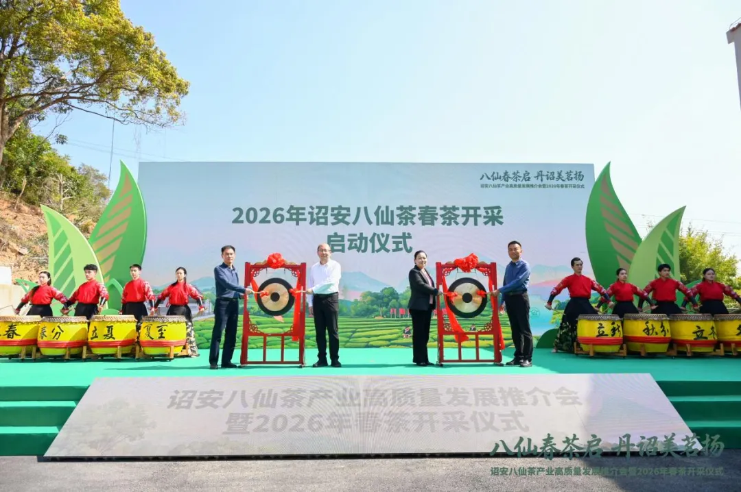 春启丹诏,茶韵飘香,3月17日,“八仙春茶启 丹诏美茗扬”诏安八仙茶产业高质量发展推介会暨2026年春茶开采仪式在诏安八仙茶博物苑成功举办。诏安县委书记远洋、漳州市农业农村局副局长林志强、漳州县领导潘海鹰、李志杰、杨俊乾参加活动。